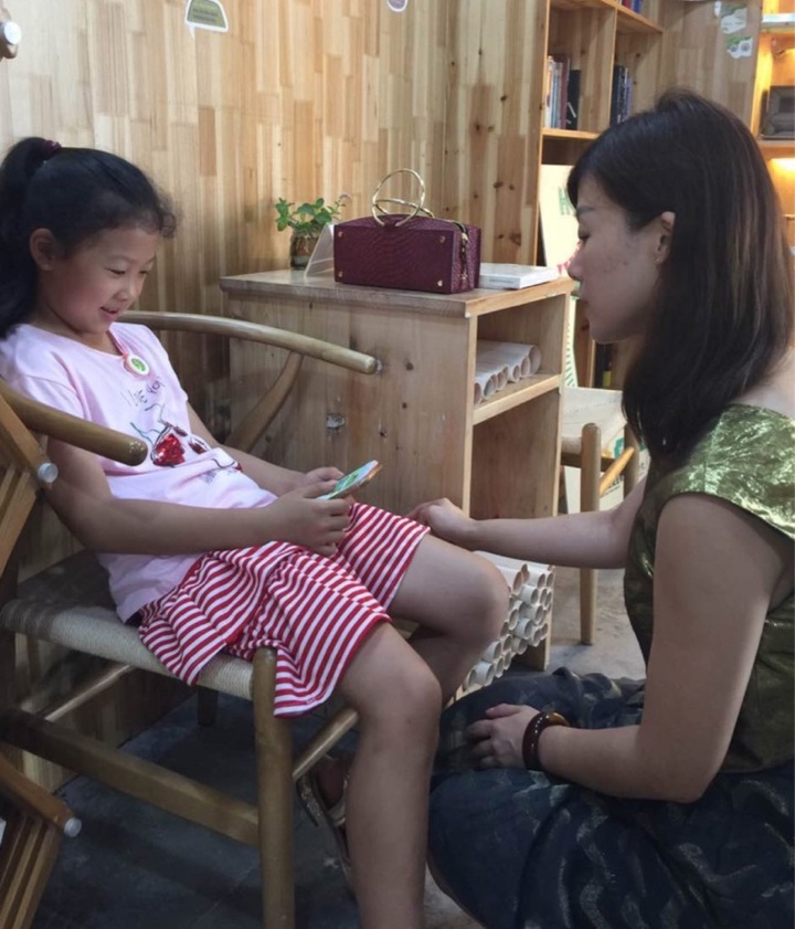 果然,今天(8月13日)一进朗读屋,妈妈紧张得忘了介绍自己,而王玉洁不仅朗读流畅,还配上了表情和动作,把故事讲得栩栩如生。