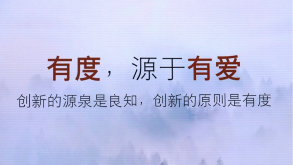 与用户相处有度、与空间相融有度、与自然相谐有度,这一切真正服务于用户体验的源泉,来自于方太的仁爱之心,“有度”是方太创新的原则,“有度”源于“有爱”。唯有那份对用户的“爱”,那份对家庭空间、自然环境的“爱”,才能把握好“度”,才能创造出伟大的产品。