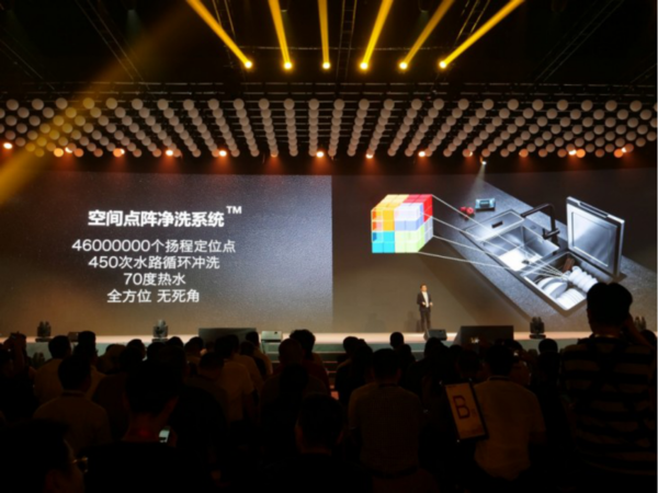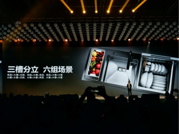 在产品发布环节,中国风贯穿始终,Q7水槽洗碗机、全新一代智能云魔方吸油烟机惊艳亮相。