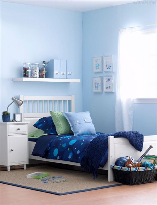 立邦翻新儿童房之后,原本墙面已经开裂的儿童房变成了具有浓浓海洋风格的童趣房间。翻新人员铲除了原有的裂纹和起皮,并对儿童房间的整体风格做了重新规划,并为房间刷上了有助于激发孩子的想象力和创造力的海蓝色。