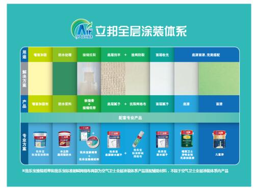 *批乐宝接缝纸带和批乐宝标准耐碱网格布两款为空气卫士全层涂装体系产品搭配辅助材料,不属于空气卫士全层涂装体系内产品。