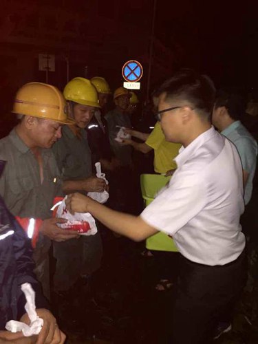 昨晚23:30至凌晨2:00,珠海肯德基克服了道路交通阻塞、水源供应不足等重重困难,将220多份热气腾腾的美食,送到了在香洲区先烈路、柠溪路和九洲大道负责道路抢通的园林局、城管局、交警、武警、志愿者手中。“送餐时,风雨交加,我们全身都湿透了,但看到连续十几个小时高强度抢险的工作人员能吃到我们的餐点,补充能量,我们心里特别高兴。”珠海肯德基的送餐员向记者表示。