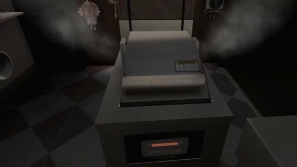 ??最可怕的是炸的那一步,整个房间突然灯光全暗,各种火花,气氛简直阴森到了极点。员工只有做出美味的炸鸡,记住制作过程的每一部,才能从这个可怕的房间逃离。
