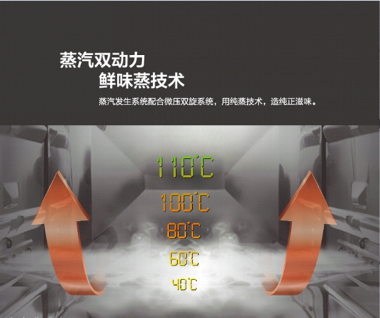 美的厨电蒸汽技术经过多年研发沉淀已经较为成熟且应用得非常细致,它在微波炉的创新应用包括了三种形态产品——直喷蒸、纯蒸炉、微蒸烤。其中囊括了3种首创蒸汽技术应用:首创纯蒸技术,即直喷蒸汽将食物蒸熟,且不借助其他器具;首创300℃高温直喷蒸汽将普通蒸汽以循环对流的方式进行不间断循环加热产生300°C的高温蒸汽,直接喷射到食物上,以超强的渗透力快速蒸熟食物,使食物脱脂减盐的同时保留其独特的口感,并最大程度锁住营养;同时具有多重加热系统,高温、普通蒸汽任意选择,满足多种烹饪需求;独创蒸汽清洁功能,通过蒸汽洗技术对微波炉进行自动清洁,更加方便省心。