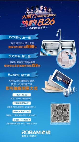 在这个火热的夏天,美丽天团:尚雯婕、薛凯琪、萨顶顶、徐怀钰、王蓉、金莎将亲临老板电器新品发布会现场,用歌声开启老板电器下半年首场全国性大型团购活动——“热购8.26”。