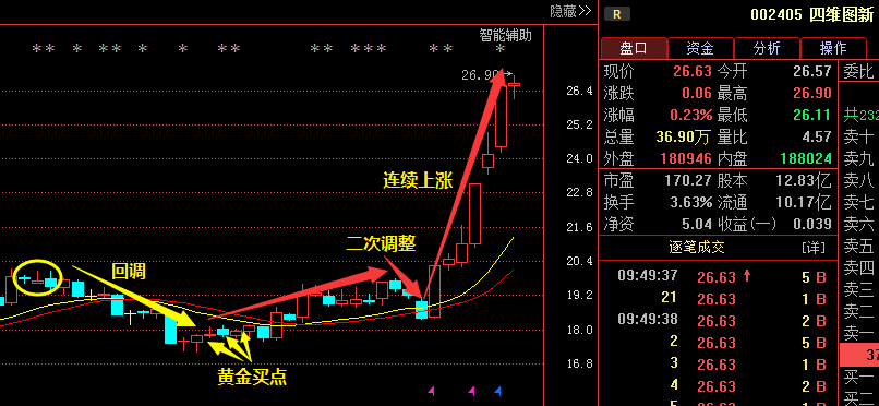 我们先来看一下通过此战法选择出来成功的牛股案例,首先来看第一只股票—四维图新(002405)