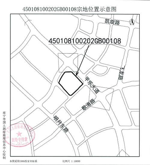 GC2017-042地块位于平乐大道西侧、宋厢路南侧,面积63.787亩。按照南宁市国土局发布的GC2017-042地块出让公告显示,土地用途以商业为主,仓储建筑面积占比为17%~25%,办公仅为4%~5%。土地使用年限为批发零售(商业)用地40年、商务金融(办公)用地50年、物流仓储用地50年。该地块容积率为>1.0且≤1.6,计容商务办公建筑面积占计容总建筑面积的比例控制在4%~5%,计容物流仓储建筑面积占计容总建筑面积的比例控制在17%~25%,其余为商业;建筑密度为>30%且≤55%,绿地率为≥20%,建筑高度为特定地区限高为≤60米。起始单价420万元/亩,成交单价420万元/亩,楼面地价3938元/平方米,总价约2.68亿元。