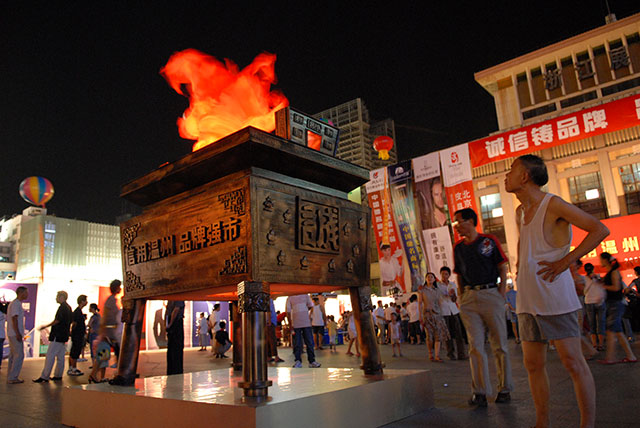 2007年8月8日,奥康第二次在武林广场举起火把,点燃了“诚信之火”,铸诚信之鼎。这是一把诚信之火,一把品牌之火,一把创新之火,只为极力寻回温州皮鞋的尊严,呼吁全社会对温州皮鞋重新定位,也警告所有的鞋行业温商包括自己,一定要“言必行,信必果”,树立正确的诚信价值观,让温州鞋涅槃重生、驰骋四海,以诚信行天下。