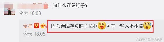 金星特别强调了一句:脖子绝对没p过!对此就有网友评论金星问道:“为什么在意脖子?”金星回复:“因为舞蹈演员脖子长啊,可有一些人不相信!”看来是怕一些人认为这图是p的,所以就特别加了说明。