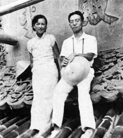 ▲林徽因与梁思成在祈年殿屋顶的合影