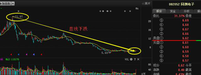 上图就是同洲电子从15年到目前的走势,股价从当初的21.97一直跌到了今天6.62,两年的时间跌到了原来的三分之一还少,这位股民朋友在说,一直想着这只股票能涨回来,可是涨一点就继续下跌,刚想割肉了,今天却又封上涨停,不过之后还是涨停打开。