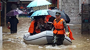 桂林漓江迎今年最大洪峰 武警转移受困民众 武警桂林市支队出动近百名官兵携橡皮艇和竹筏,分三路撤离被围困民众,并给滞留民众送去饮用水和干粮。