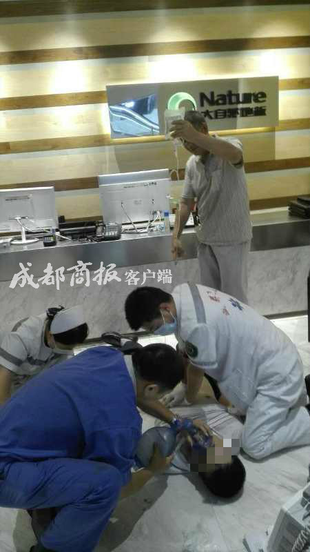 袁建华说,她把先生扶在旁边的沙发半躺着,导购员拨打了120,10分钟后,急救医生赶到现场,对黄世东进行了半个多小时的抢救后,送往成都城北医院,下午5点14分,家属被告知病危,立即将黄世东转到成医附二院·核工业四一六医院。次日上午10点30分左右,黄世东在四一六医院不治身亡。