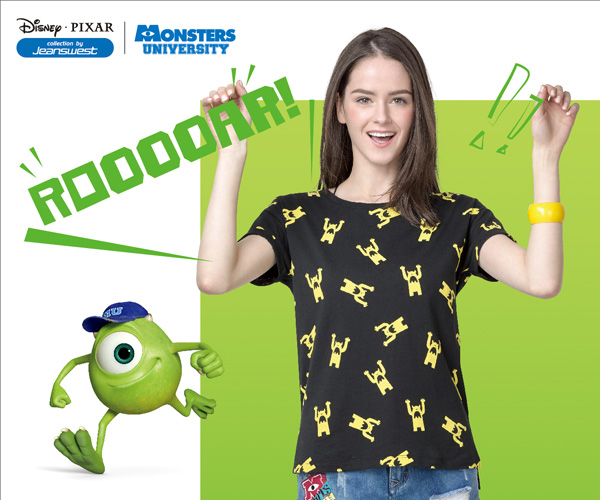 拒绝单调与枯燥,“大眼仔”麦克、“毛怪”苏利文喊你一起FUN转整个暑假!可爱淘气又喜欢在夏日搞搞震,那就千万别错过怪兽大学系列T恤!全件印花和植毛印花的创新设计,融合搞怪有趣的卡通人物元素,搭配个性袖口的剪裁,不仅巧妙地修饰手臂线条,提升个人魅力,不同身形更能穿出不同的视觉效果,搭配时下流行的破洞牛仔裤,或者休闲短裤,出门和小伙伴们逛街玩耍,拥有百分百的回头率!