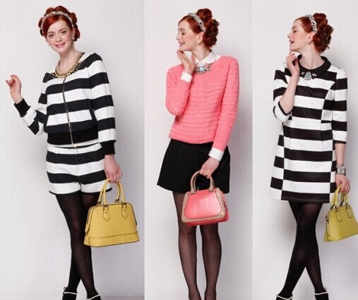 结合当季流行的运动元素及套装搭配方式,运用不对称的条纹拼接元素,在细节上巧妙的运用订珠及立体数码印花,使整个系列更加的多元化;
