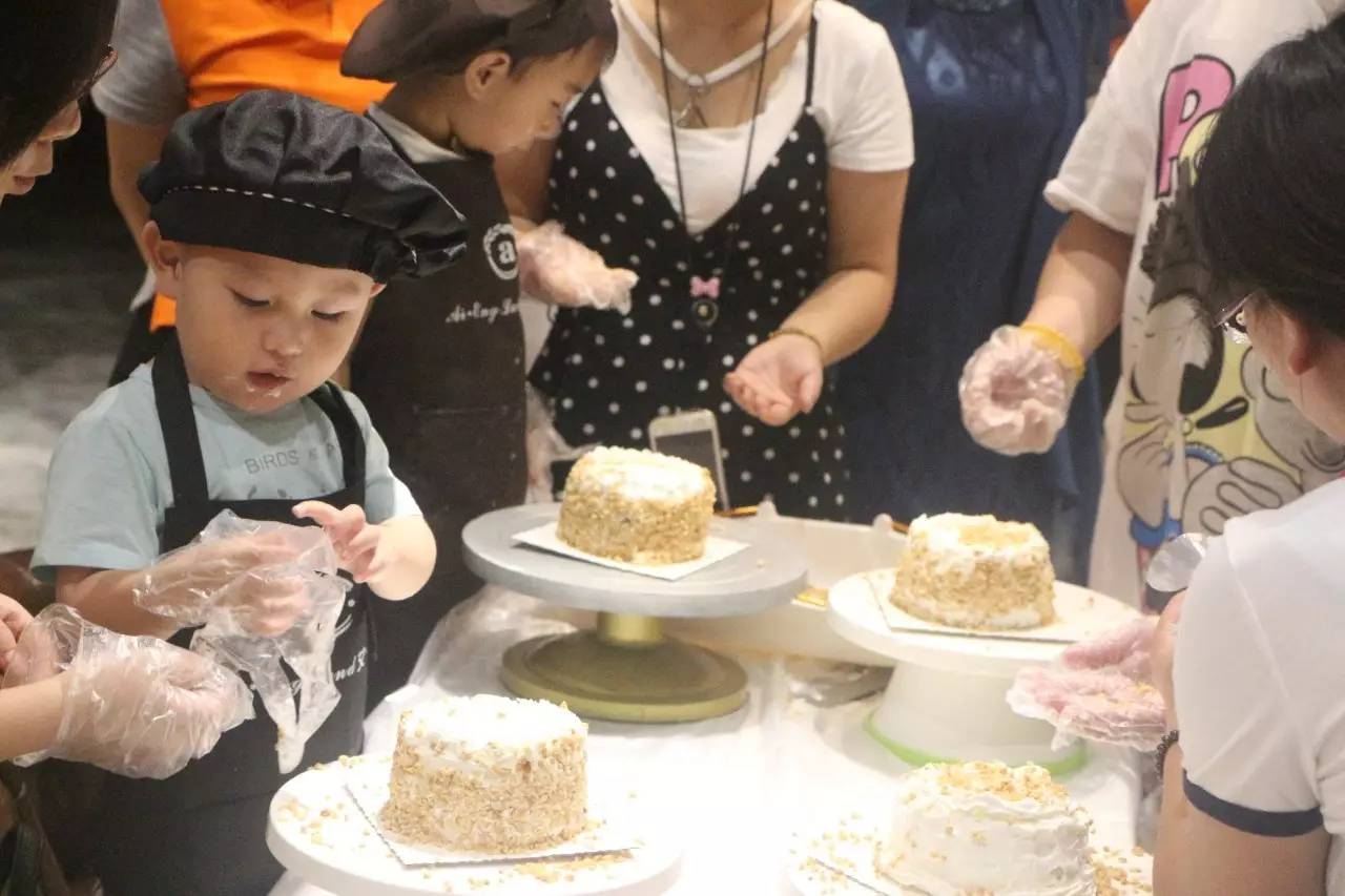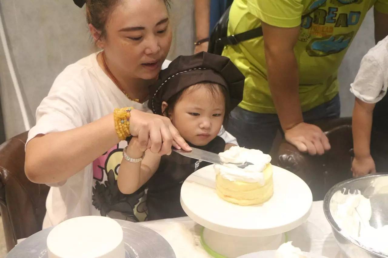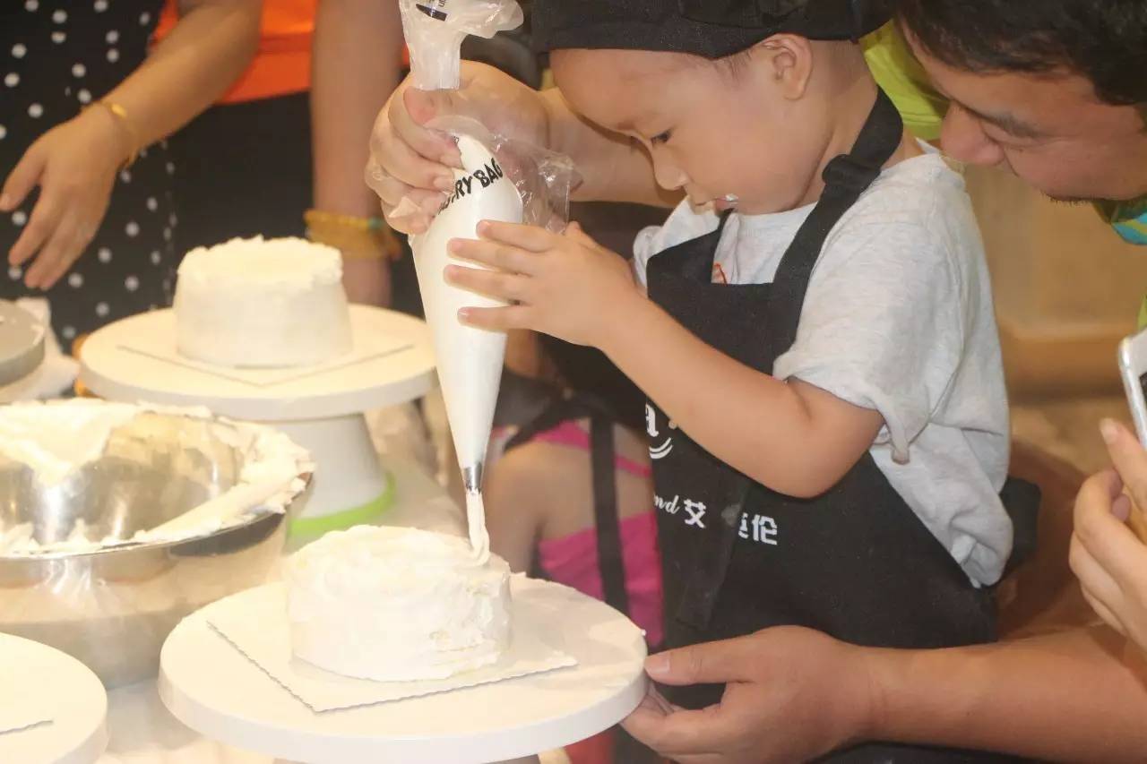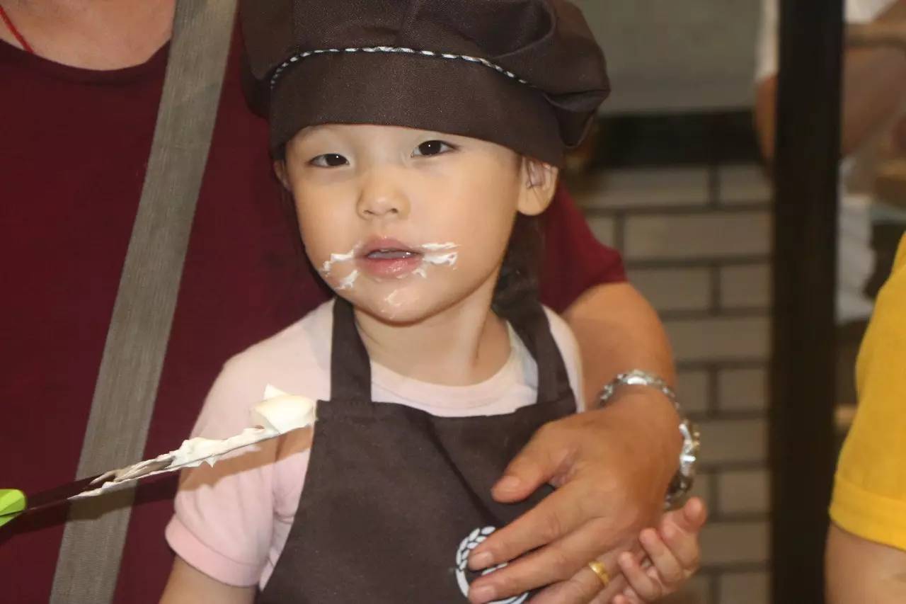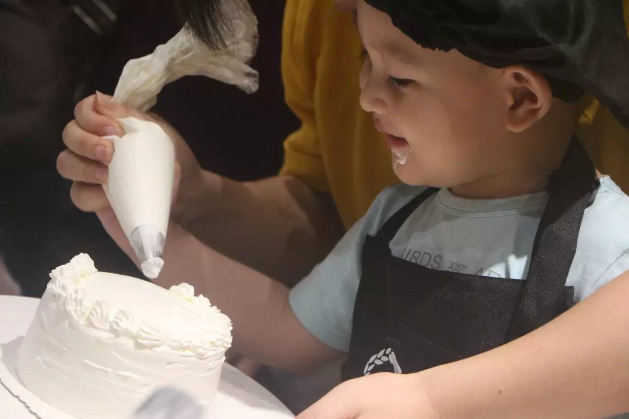 听完了好听的故事,接下来就是亲手做蛋糕了,在烘培师的示范后,小朋友们在爸爸妈妈的帮助下,各个做的有模有样