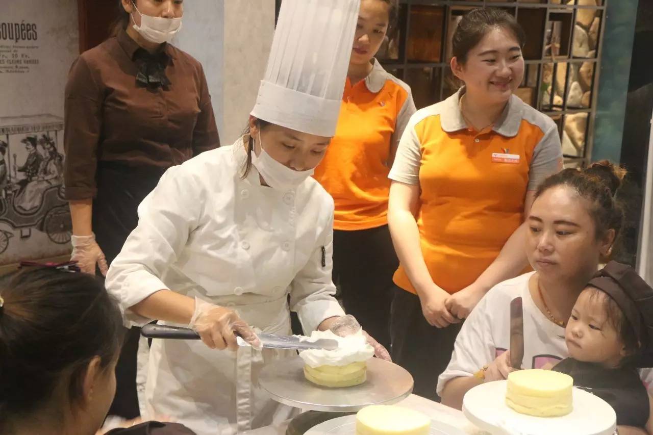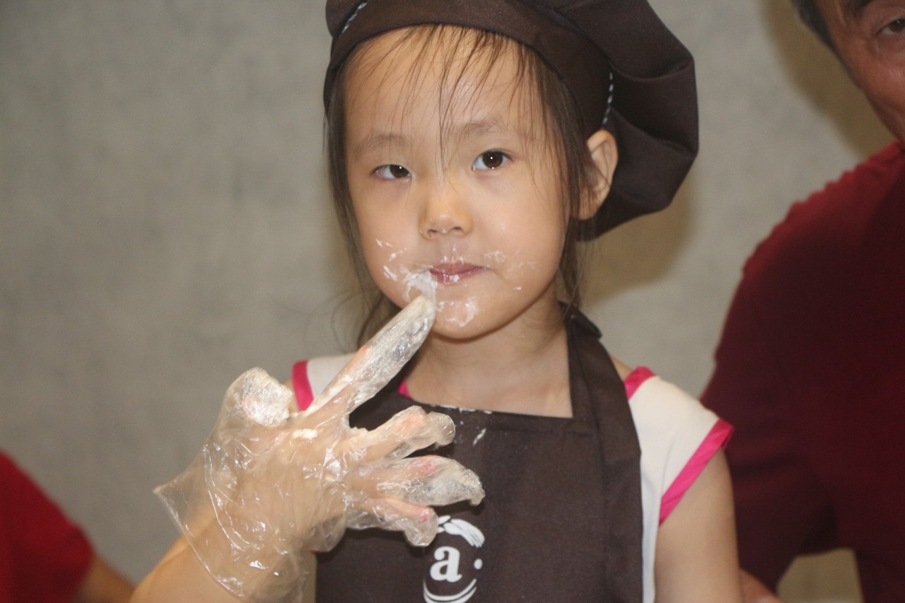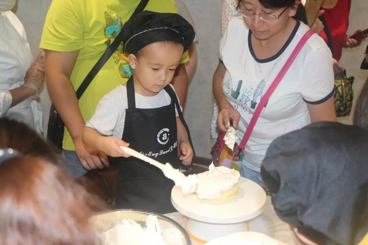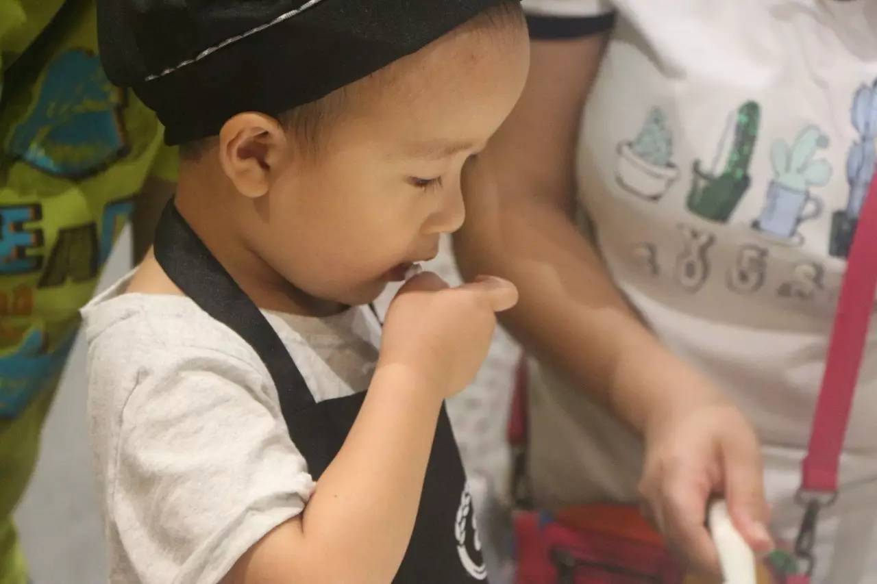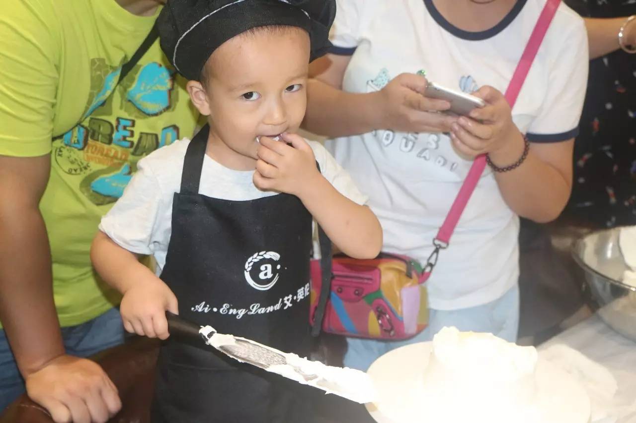 听完了好听的故事,接下来就是亲手做蛋糕了,在烘培师的示范后,小朋友们在爸爸妈妈的帮助下,各个做的有模有样