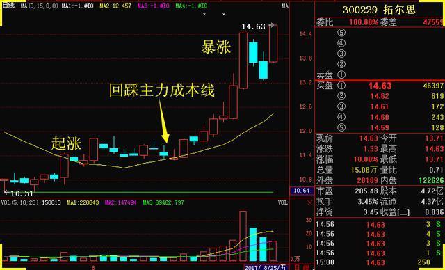当股价出现拉升,主力资金持续流入,而股价却出现急跌,回踩主力成本线,这时候就是最佳的进场机会,因为主力洗盘意图明显,洗盘结束、暴涨开始。