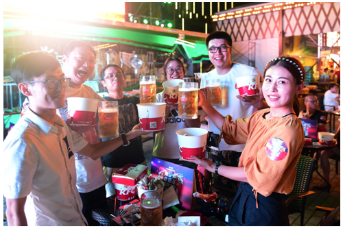音乐、啤酒、炸鸡,一个都不能少!近日,一场音乐潮趴在崂山啤酒节青啤花园火热举行,现场共有百余年轻人参加,人气爆棚、热闹非常。据了解,这是肯德基与青岛啤酒联合重磅推出的“肯德基&青啤狂欢之夜”。