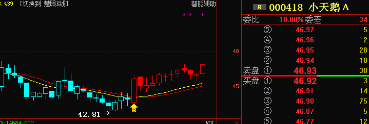 今天文轩还是抽空给大家用一分钟选股法选出来了一只底部有资金进场极具投资价值的黑马股:小天鹅A(000418)