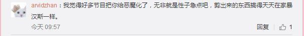 我觉得好多节目把你给恶魔化了,无非就是性子急点吧,剪出来的东西搞得天天在家暴汉斯一样。