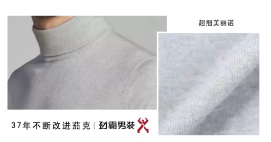 超细美丽诺:贴身层面料方面,美丽诺羊毛依然是打造高端贴身衣物的核心面料,具有柔软的手感和舒适的贴肤感,羊毛混纺也展现出优良的吸湿性和出色的亲肤舒适感。带来优雅光泽、更好的整齐性和现代手感。