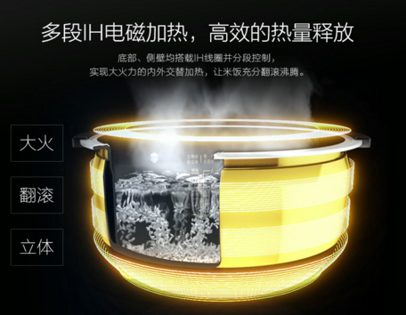 什么电饭煲煮饭又快又好吃呢?在记者走访厨电市场时,有导购员表示:“现在IH电饭煲卖得是比较好的,因为这类电饭煲用电磁加热火力大,很快就能把饭煮熟。但要说煮饭又快又好吃的话,还是一些高端IH电饭煲做得比较好,比如美的真空变压IH电饭煲,它不仅有电磁加热技术,还运用了可变压力科技,煮出来的饭口感、味道都很棒。”