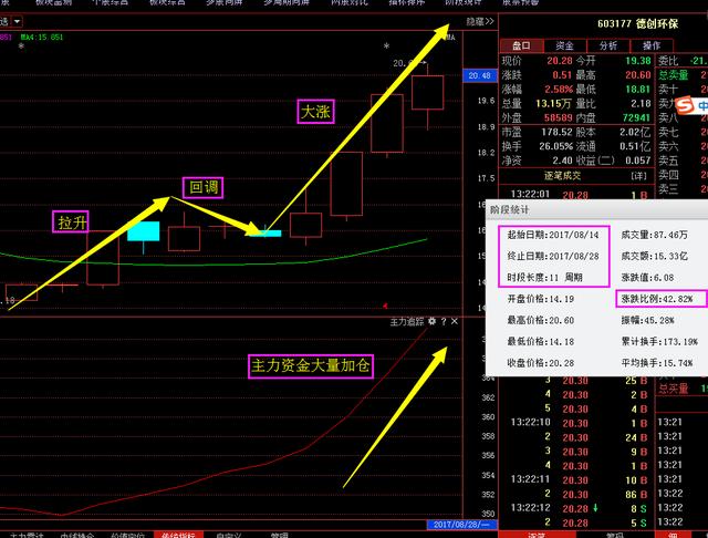【德创环保】这只股票也是我在8月12号分享给大家的,相信很多朋友都把握住这波机会了,从图中可以看出这只股票前期一波拉升后开始回调,然后就大涨了这就是典型的上升回档形态,而且主力资金也是大量的在加仓,在短短十多天涨幅就高达42%,像这样有主力资金进场的股票风险是很小的,像这样有主力资金大量加仓的牛股还有很多,今天我在给大家分享一只有主力资金大量加仓的牛股|: