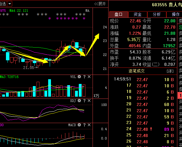 今天雨偌还是给大家带来一支黑马股,下面来看一下该股目前的走势情况:贵人鸟(603555)