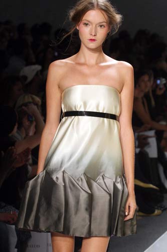 在纽约Grand Park的时装周会场里,欧柏兰奴“人面桃花”2009春夏时装发布会在众人的翘首以盼中上演。在以节奏高效、商业至上的纽约时装周上,罗峥的30余套设计一一接受苛刻的时装编辑和商家买手的简约。他们有可能会因为“桃花”的神秘色彩慕名而来,却绝不会对看过的衣衫闭口不谈――非常好或太糟糕了,只销一句话便决定了一个品牌是否能在纽约立足。结果,等待欧柏兰奴的是久久掌声中,非常好!