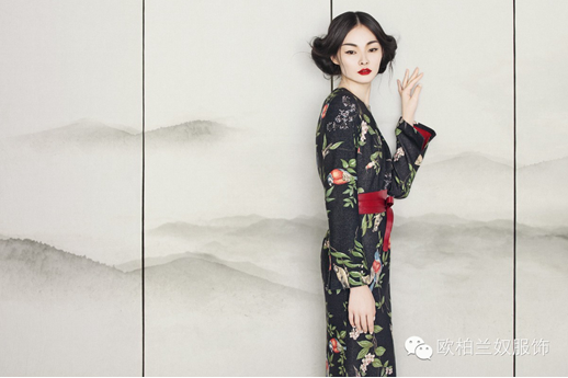 善于将品牌精神和时尚魅力完美融合的欧柏兰奴,2015秋冬系列以全新的优雅艺术和极富东方韵味的表现形式化解了这个季节给人的沉闷印象。古典而雅致的红、粉、蓝等色彩贯穿整季,独特原创印花、肌理提花,充满了浓郁的艺术气息。低调奢华的矜贵面料,精致繁复的制作工艺,西方立体结构剪裁迸发出欧柏兰奴新一季精粹古典与诗意优雅的美态。