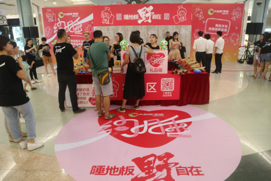 游戏一共分为“啪啪你的约睡主张”、“咚姿势告白TA”、“为TA撑起一片天”、“撩人姿势睡服TA”四个环节,内容丰富精彩。除此之外,商场里各种地贴、垂幅、背景墙、手举牌等上面满满都是“不要被舒适,销蚀了意志;约睡地板,找回野心!”“没睡过地板,不算真老板”等各种励志走心的话语直击人心。