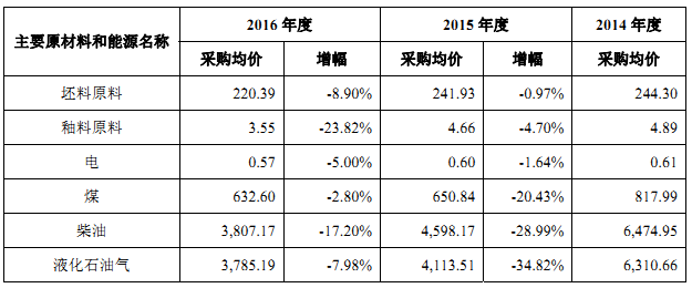 根据招股书显示,2014年到2016年,蒙娜丽莎的原材料采购价格持续下降,单年最大下降幅度高达34.82%。