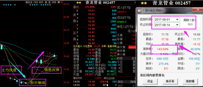在讲解潜力股之前呢?我们先来回顾通过“弧形矩阵战法”选出来的两只牛股的真实案例,可供参考学习,先来看一下,第一只:青龙管业(002457)
