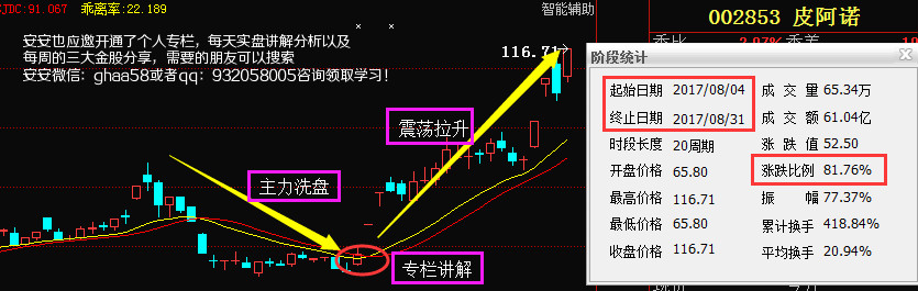 皮阿诺,是在8月4号,安安用一分钟选股法选出,该股经过前期震荡行情之后,主力开始洗盘,近期股价回踩支撑线,主力资金也是拐头向上,VOL成交量也在持续放量,说明主力资金是持续流入的,果断选出此股,20个交易日涨幅超过了81%,当然是安安的朋友,只要是及时看了安安的文章,学习了安安所讲的选股法,的朋友,都是抓到了这波。想学习此类选股方式的找安安查看,安安都有详细的讲解,如果你看了,对个人选股能力肯定是有不小的提升。