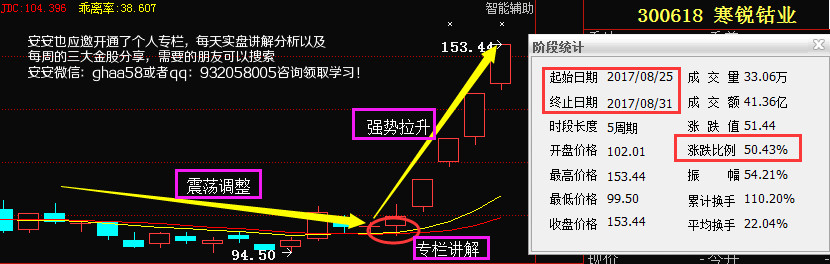 寒锐钴业,在7月底上涨一波之后,在8月初股价开始出现下跌,虽然股价在回调,但是安安看到主力资金仍然在不断流入,说明这是主力在洗盘,之后在8月21号安安看到主力洗盘结束,趋势出现金叉,当天用选股方法选出了寒锐钴业这只股票,在21号那天有心看到了文章的朋友布局了寒锐钴业,果不其然,寒锐钴业开始出现第二波上涨,5个交易日的时间,涨幅达到了50%。试想一下,你也是安安的朋友,你也学会了这种选股思路,那么这样涨幅空间,你是不是也可以轻松把握住呢?错过的朋友没有关系添加安安薇衅呺:ghaa58或qq:932058005