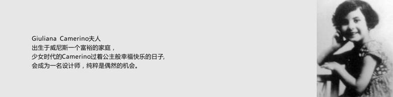 Giuliana Camerino夫人出生于威尼斯一个富裕的家庭,少女时代的Camerino过着公主般幸福快乐的日子,会成为一名设计师,纯粹是偶然的机会。