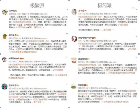 在日渐破碎化的媒介环境里,受众注意力成为稀缺资源,而大多营销只是通过悬念,猎奇等内容达到快速抢占消费者注意力的目的,并未延长“受众停留时间”与受众进一步深度沟通。志邦此次厨房派·对最大的突破就是主动出击,特意将派·对分成截然不同的两派,把选择权直接交给受众,号召支持自己喜爱的派·对。这一巧妙设置使受众处于主动位置,大大降低了受众初步接触品牌信息的抗拒度。受众直接以个人喜好快速作出极繁或极简的选择,因此受众更愿意与品牌互动,这归功于志邦对受众参与社交传播的心理的深入研究。