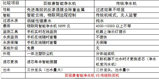百丽康智能净水机与传统净水机对比: