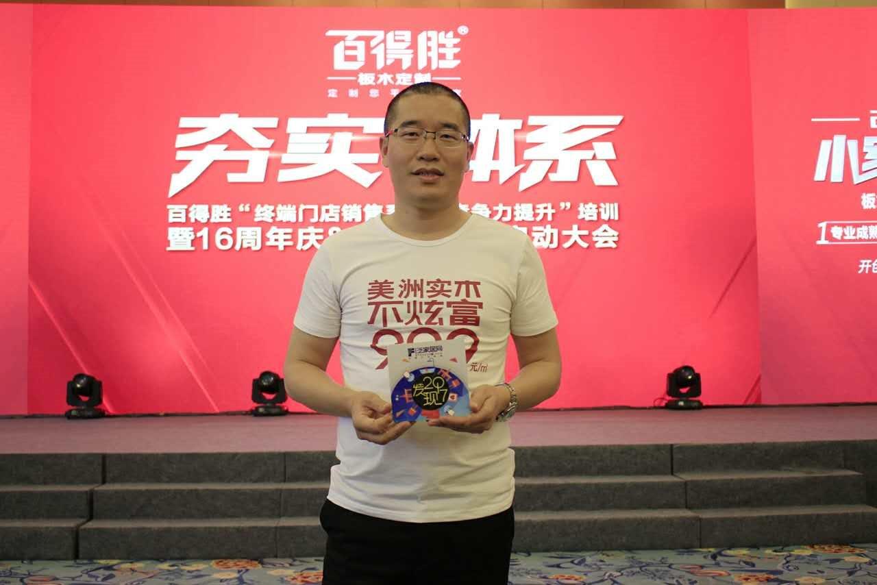 ??百得胜培训学院院长杨占刚在本次大会上做出了讲解,百得胜所精选的美洲实木皆是树龄在60年以上的高山耐寒树种。该种树种数目的密度高,柔韧度好,是北美人建房的首选材质。而此类树种因为生长在纯净的高山地带,树木纹路自然,自带清香。以此基材所生产出的芯板纹路清晰自然,更为美观。