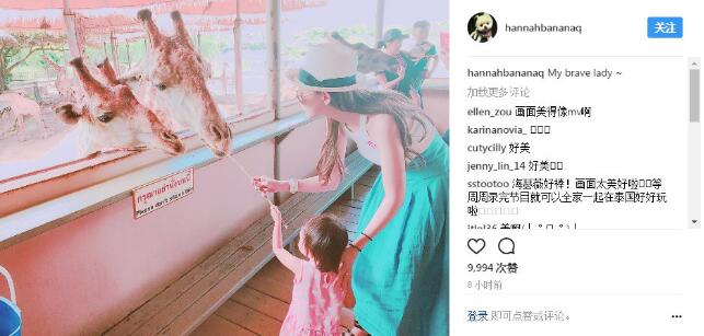 凤凰网娱乐讯 8月9日晚,昆凌在社交网站上晒出一张与女儿小周周逛动物园,携手共喂长颈鹿的照片,画面超有爱!