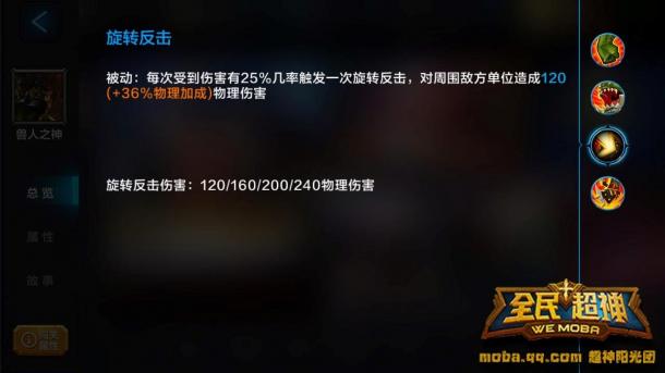 ??旋转反击:被动技能,每次受到伤害有一定几率触发一次旋转反击,对身边所有单位造成伤害。
