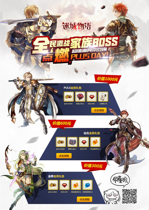 即日起,只要进入京东,就可以用京豆兑换迷城礼包辣!正值10.18京东PLUSDAY会员日,如果你是东东的PLUS会员,那么你就能直接领取到价值1000元的大礼包,钻石和金牌会员也可以使用京豆免费兑换价值300-600元不等的福利礼包的说~(好鸡冻!废话少说,用力戳我>>>https://sale.jd.com/act/jSIO8YcHulb5Lxed.html)