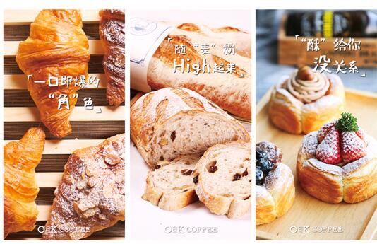 烘焙产品不仅口感丰富,而且更具有明显的加工优势。拿欧克咖啡的烘焙食品为例,除了双层点心塔,下午茶的点心还有多样的搭配,比如纯正的欧包。