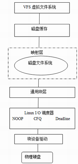 VFS虚拟文件系统:内核要跟多种文件系统打交道,内核抽象了这VFS,专门用来适配各种文件系统,并对外提供统一操作接口。 磁盘缓存:磁盘缓存是一种将磁盘上的一些数据保留着RAM中的软件机制,这使得对这部分数据的访问可以得到更快的响应。磁盘缓存在Linux中有三种类型:Dentry cache ,Page cache , Buffer cache。 映射层:内核从块设备上读取数据,这样内核就必须确定数据在物理设备上的位置,这由映射层(Mapping Layer)来完成。 通用块层:由于绝大多数情况的I/O操作是跟块设备打交道,所以Linux在此提供了一个类似vfs层的块设备操作抽象层。下层对接各种不同属性的块设备,对上提供统一的Block IO请求标准。 I/O调度层:大多数的块设备都是磁盘设备,所以有必要根据这类设备的特点以及应用特点来设置一些不同的调度器。 块设备驱动:块设备驱动对外提供高级的设备操作接口。 物理硬盘:这层就是具体的物理设备。