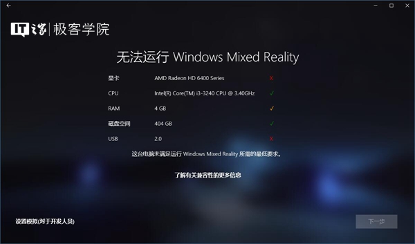 原标题:IT之家学院:无视硬件检测直接运行Win10混合现实门户