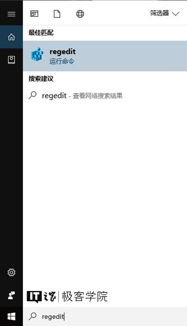 要解除此限制,你只需在微软小娜当中搜索并打开regedit;