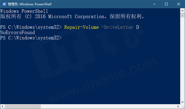 如果你更习惯使用PowerShell,那么在PowerShell上,IT之家建议你使用以下的方式来检查磁盘中的错误。