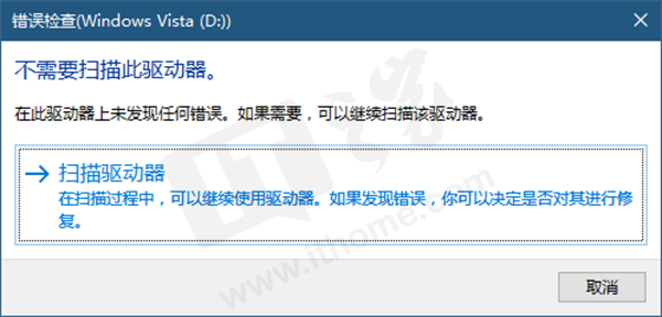 当然了,如果你的目标磁盘驱动器当前没有错误,它会提示你不需要扫描此驱动器,当你觉得你的磁盘驱动器好像有点不对劲时,再扫描也不迟。