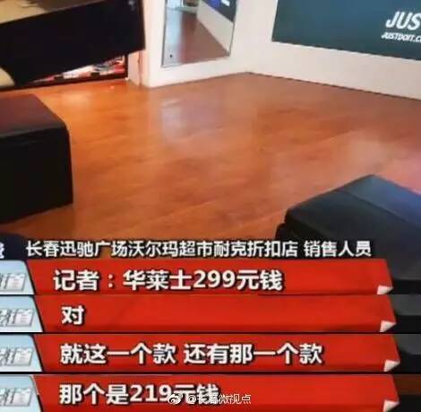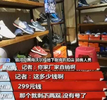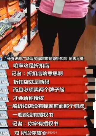 在沃尔玛地下一层超市,名为耐克折扣店出售耐克华莱士黑色款为199元,而在迅驰广场二层耐克授权店的华莱士多少钱呢?销售人员的一番话引起了记者的警觉。